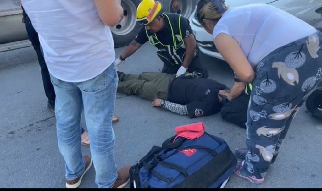 Paramédicos de Rescate Municipal a bordo de la unidad 10 atendieron al motociclista para trasladarlo a un hospital. Agentes de Segurifad Vial llegaron al lugar para realizar los peritajes.