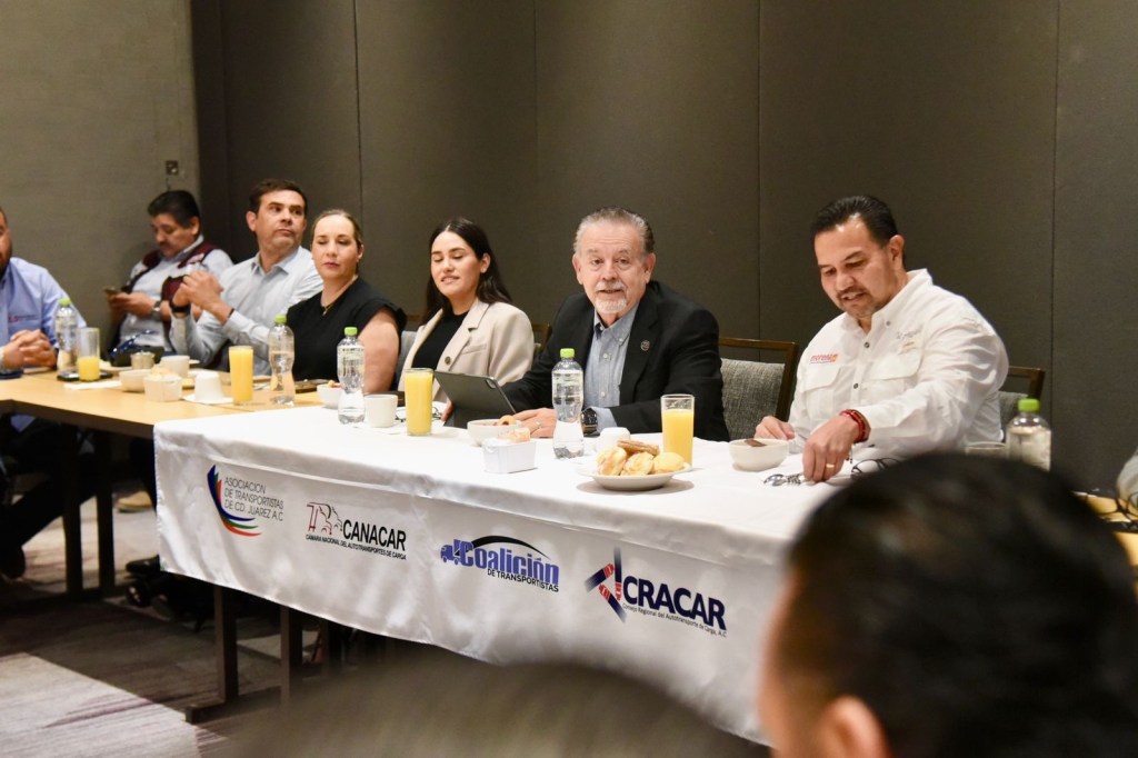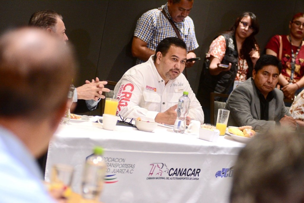 Ciudad Juárez.– El candidato a la alcaldía, Cruz Pérez Cuéllar, se reunió con socios de la Asociación de Transportistas de Carga de Ciudad Juárez, donde escuchó sus inquietudes y necesidades.