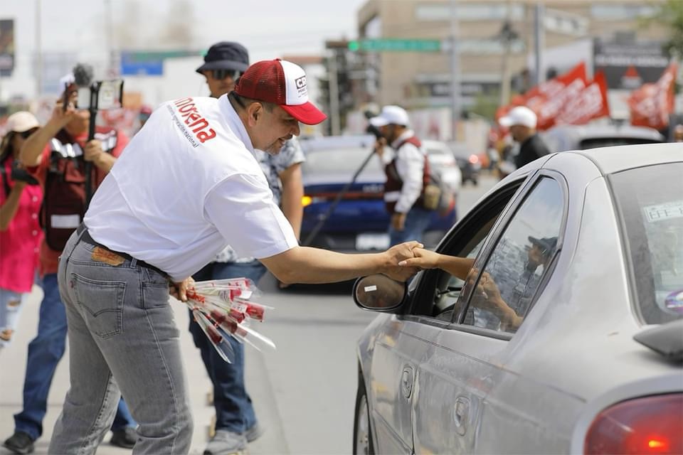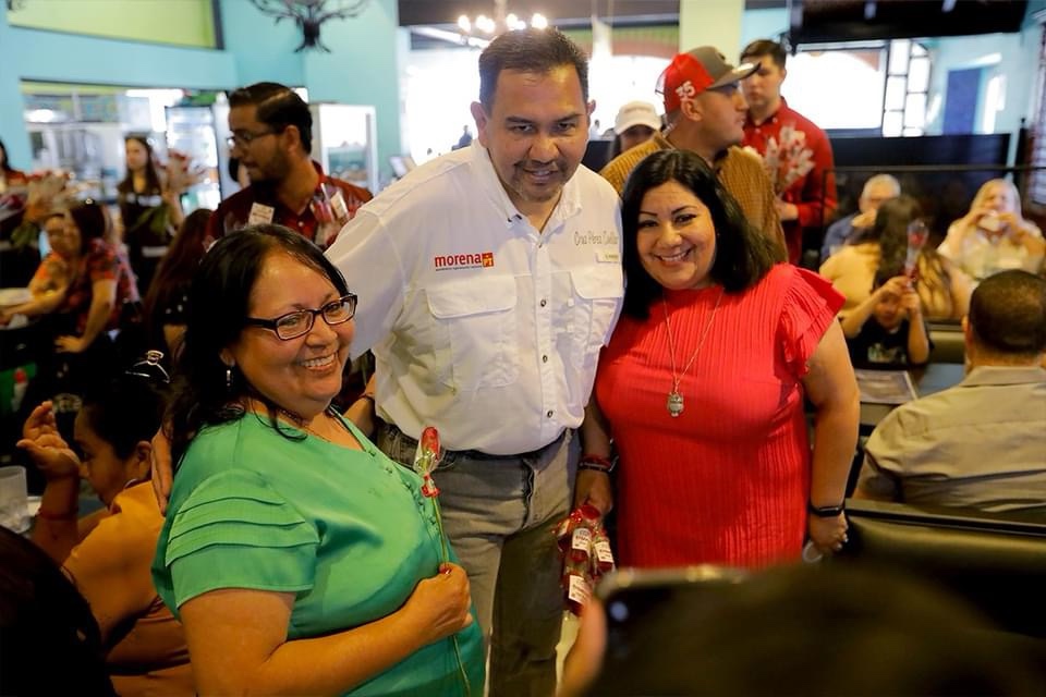 Ciudad Juárez.– En varios cruceros de la ciudad y restaurantes, el candidato a la presidencia municipal por Morena, Cruz Pérez Cuéllar, regaló rosas y felicitó a las madres hoy en su día.