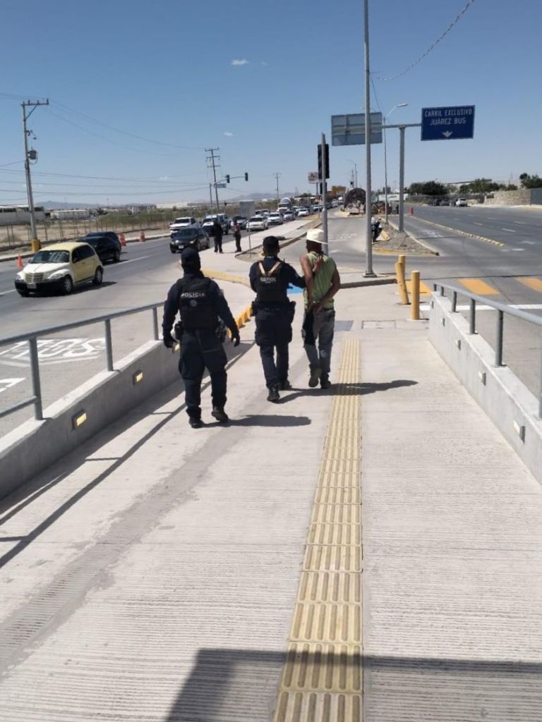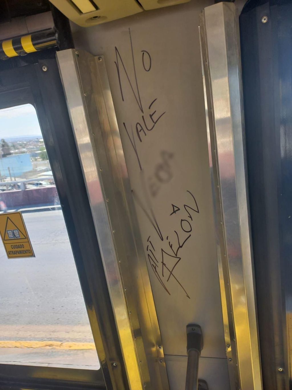 Ciudad Juárez.- Ante la falta de un buzón de quejas y sugerencias, un sujeto apodado “Pelón” fue detenido por la Policía Municipal después de ser sorprendido rayando una moldura del Juárez Bus.