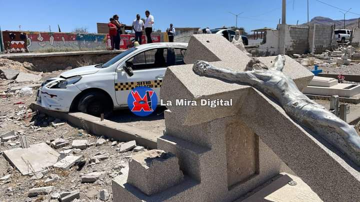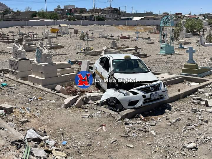 Ciudad Juárez.-Un taxista que conducía a exceso de velocidad perdió el control y terminó dentro del cementerio municipal del bulevar Panteón Municipal.