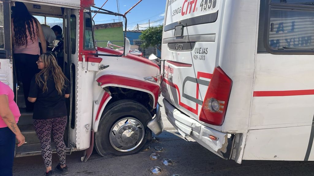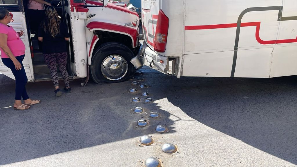 Ciudad Juárez.-Esta tarde se registró un fuerte choque entre dos ruteras de transporte personal, dejando como resultado a seis personas lesionadas.