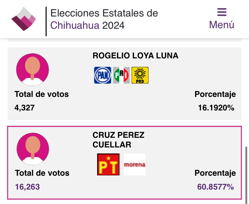 Ciudad Juárez.– El candidato a la presidencia municipal por Morena-PT, Cruz Pérez Cuéllar, en los resultados del Programa de Resultados Preliminares en Chihuahua aventaja en la elección en nuestra ciudad.