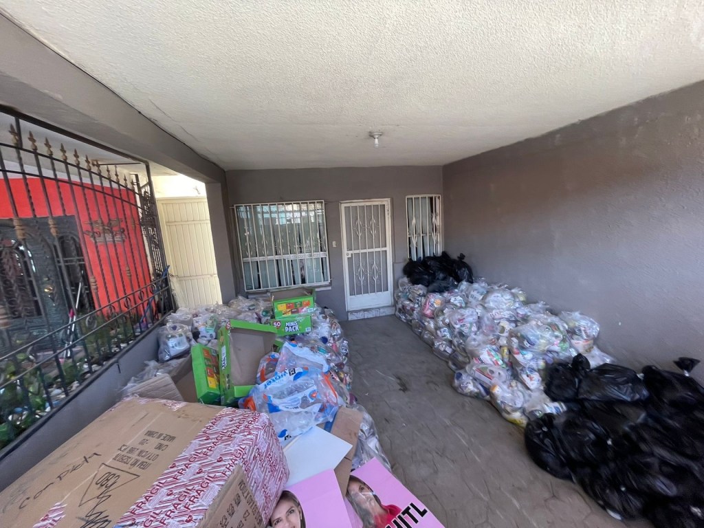 En el lugar hay cientos de bolsas que contienen comida esto en la calle Ignacio Dávila, número 2525 de la colonia Misiones del Portal, la cual se encuentra en resguardo por elementos de seguridad pública. Dichas bolsas de despensas contienen los logos del Banco de Alimentos.