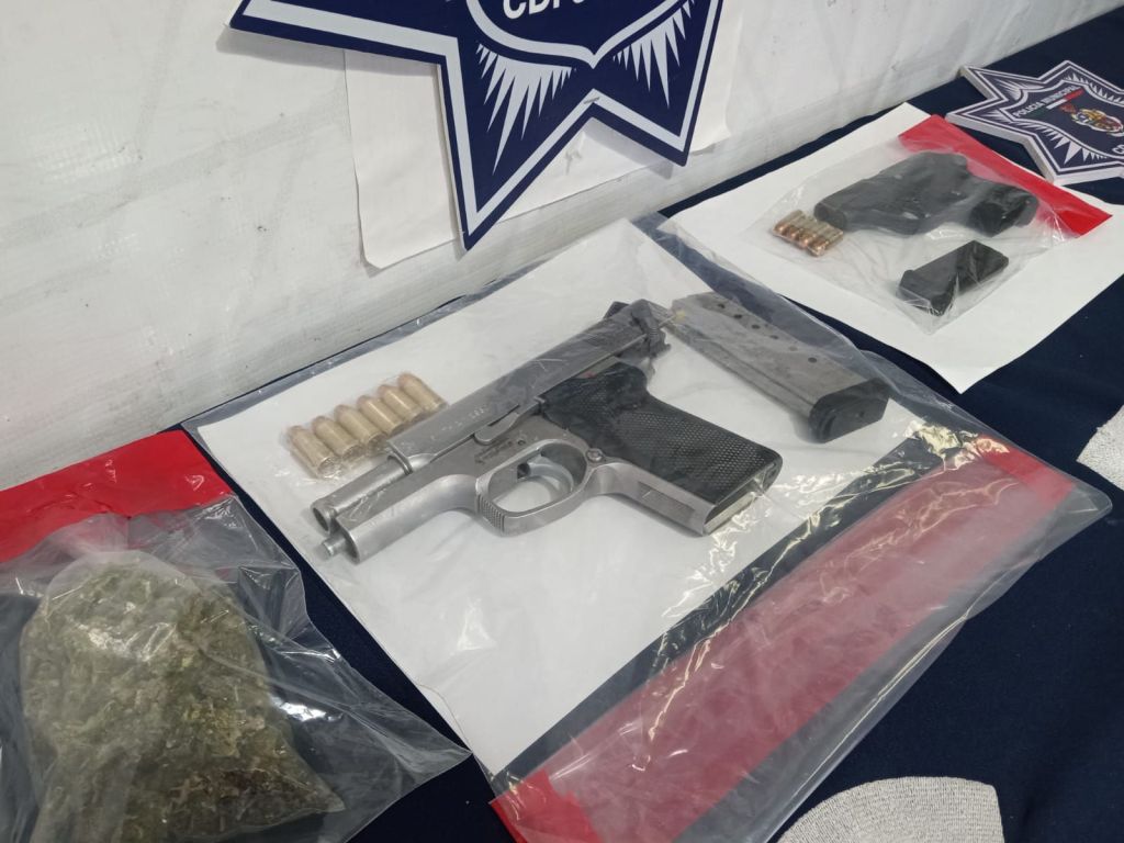 Elementos de la Policía Municipal los interceptaron en la colonia Senderos de San Isidro, cuando uno de ellos manipulaba un arma e intentaba subirse a una camioneta Dodge RAM. Al momento de inspeccionarlos, se les encontró droga y un arma más.