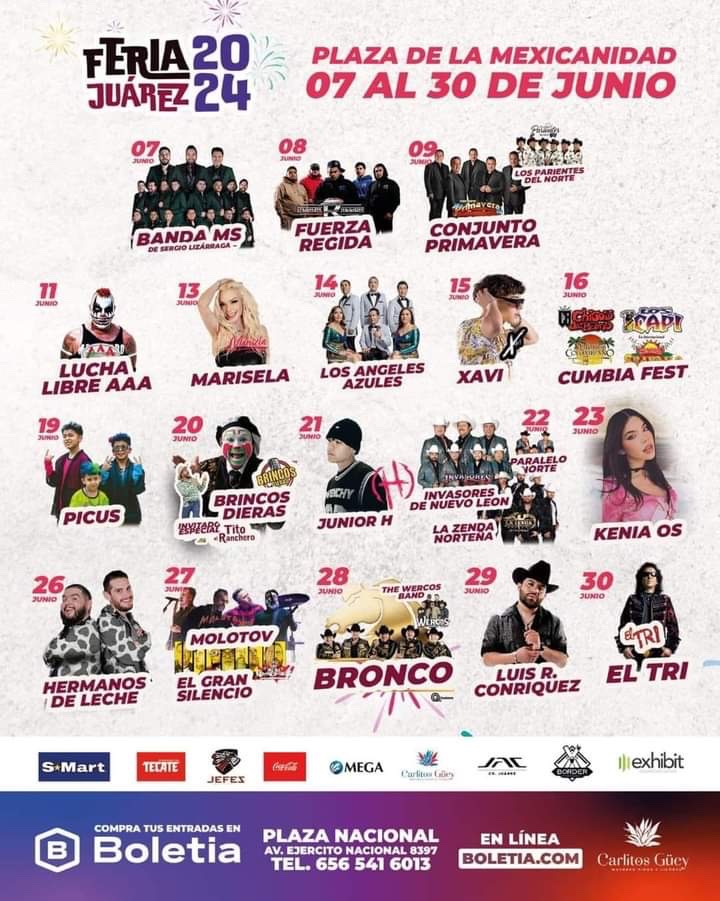 Será la BANDA MS quienes deleitarán a los Juarenses el día de hoy, Grupo Fuerza Regida mañana sábado y Conjunto Primavera el día domingo.