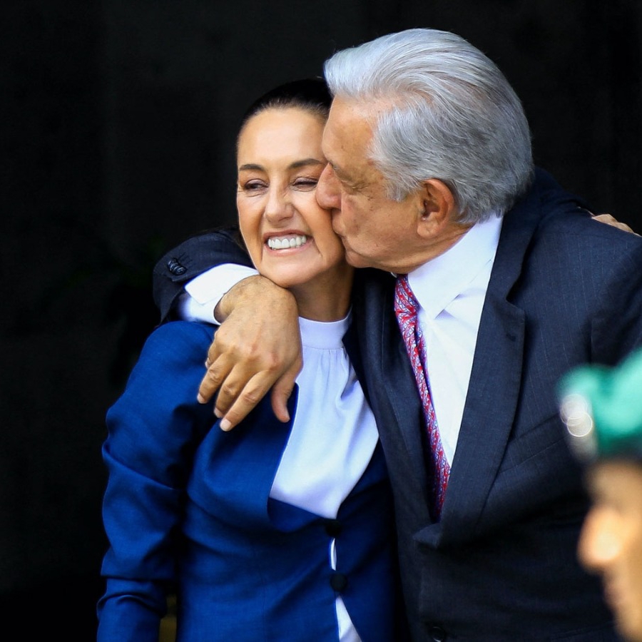 Antes del evento, López Obrador recibió a la doctora Sheinbaum con gran alegría, levantándole la mano en señal de apoyo y dándole un beso de bienvenida.