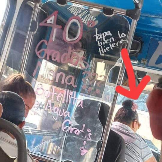 Ante el intenso calor, Paloma decidió ofrecer botellas de agua gratis a sus pasajeros como un gesto de bondad y empatía. Con un mensaje en el vidrio de su camión que dice “¿40 GRADOS NENA? BOTELLITA DE AGUA GRATIS” y una hielera llena de botellas de agua helada, Paloma demuestra que pequeñas acciones pueden marcar una gran diferencia.