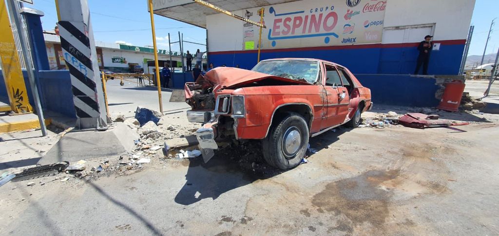Ciudad Juárez.-Un conductor de 81 años quedó atrapado dentro de su vehículo antiguo después de volcar en el distribuidor Sanders y Eje Vial Juan Gabriel.