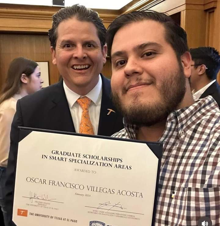 Además de su trabajo en Tesla, Óscar es Asistente de Investigación en el ASPIRE Research Center de UTEP, donde cursa una maestría en Ingeniería de Sistemas.