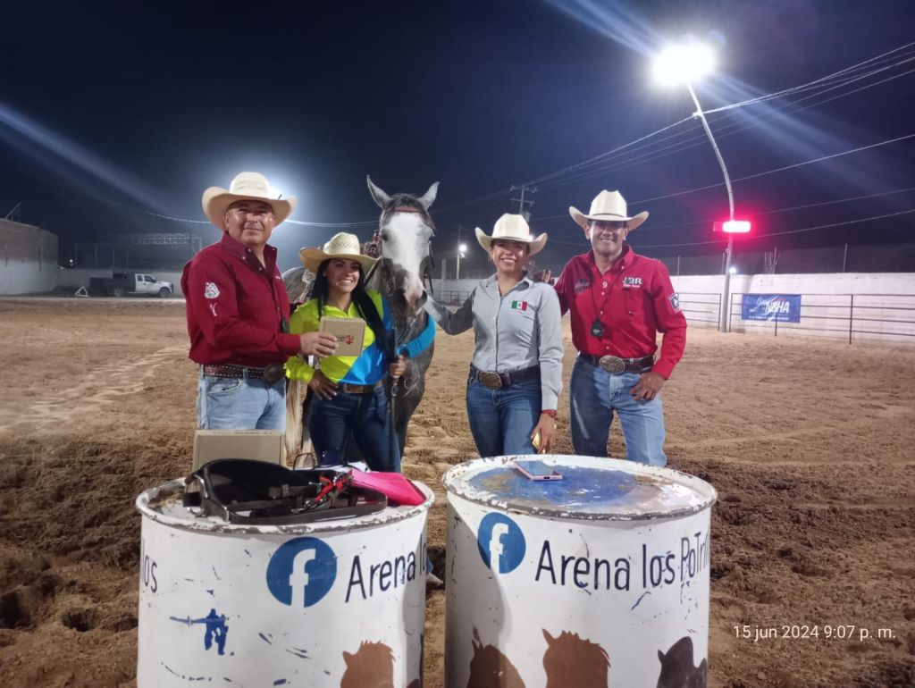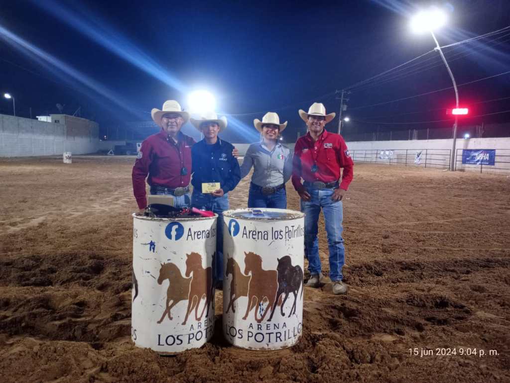 Ciudad Juárez.-La amazona juarense, Melanie García, logró posicionarse en primer lugar en el Circuito de la National Barrel Horse Association o NBHA, México Región Juárez, en carreras de barriles a caballo, evento que se llevó a cabo el fin de semana en la arena Los Potrillos.