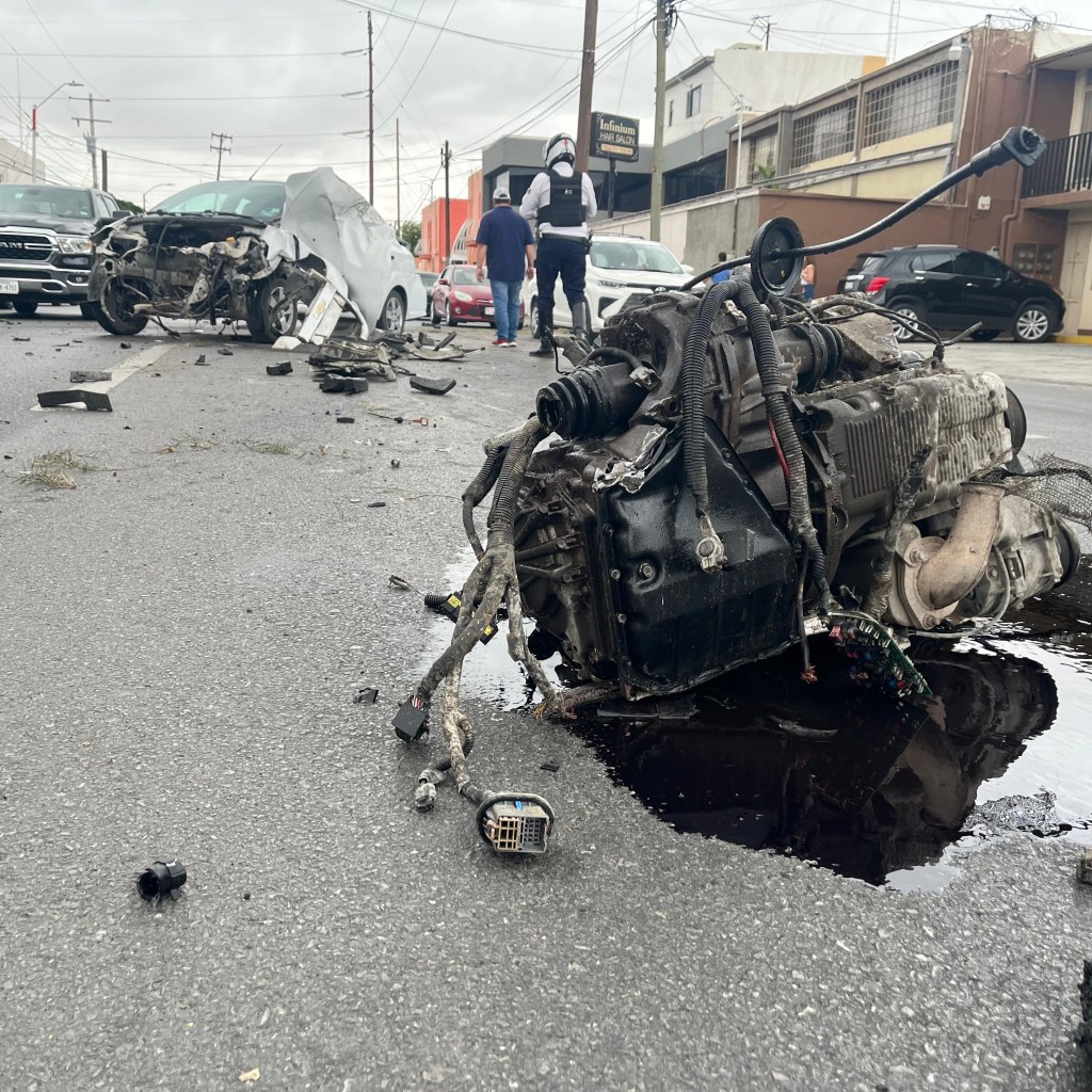 El choque se registró en la avenida Plutarco Elías Calles y la Av. Vicente Guerrero, lugar en donde quedó el vehículo completamente destrozado y el motor proyectado varios metros.