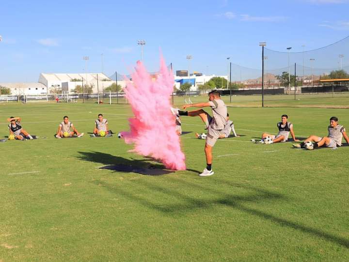 Ciudad Juárez.-El jugador de los Bravos de Juárez, Aitor García, anunció el sexo de su segundo hijo durante una sesión de entrenamiento.