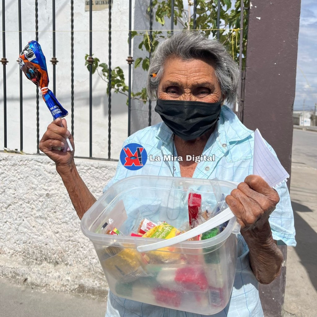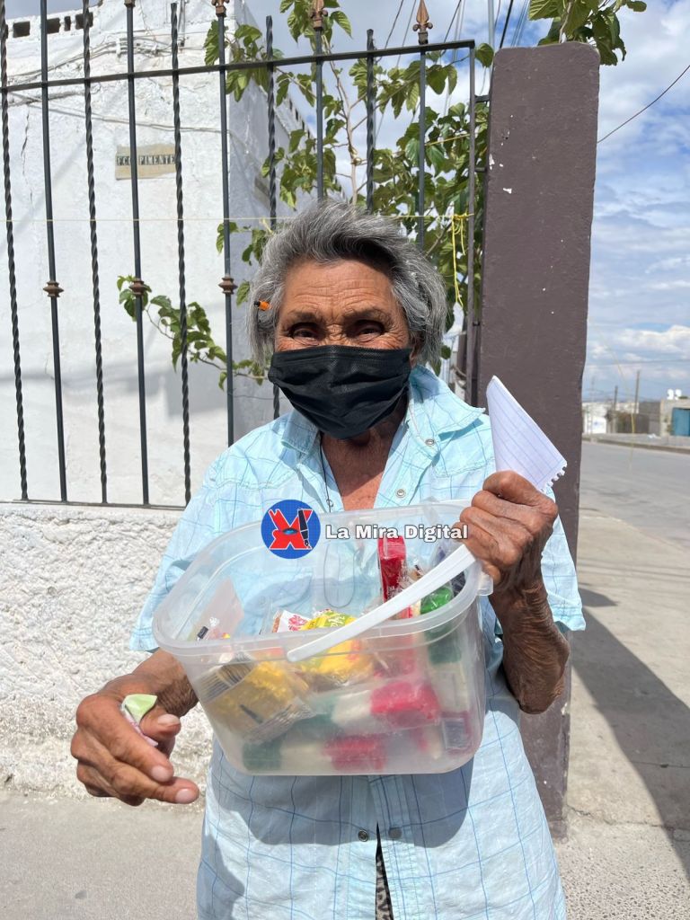 Ciudad Juárez.-La abuelita Linda, de 85 años es un mujer juarense que a pesar de las duras condiciones climatológicas, sale con una sonrisa en el rostro a vender sus dulces.