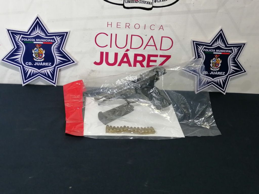 Ciudad Juárez.-Dos sujetos identificados como José Alberto M.B., de 47 años, y Cristopher R.S., de 25 años, circulaban a velocidad excesiva en una camioneta oscura, sin placas, y portaban armamento.