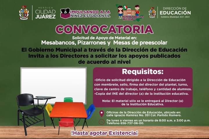 Ciudad Juárez.-El Gobierno Municipal, a través de la Dirección de Educación, les invita a participar en el programa “MI PATRIA INICIA EN MI ESCUELA” con la entrega de: