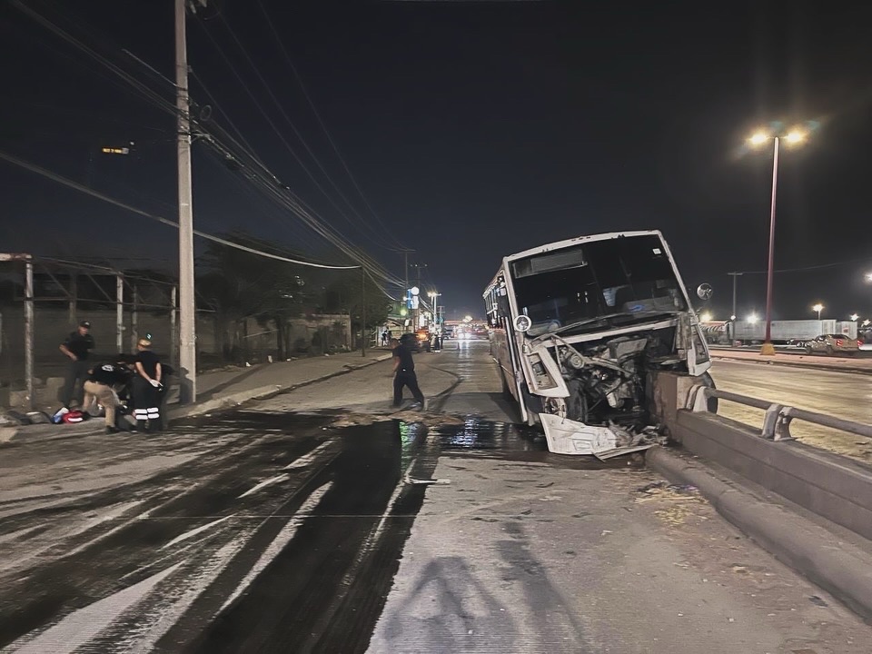 Ciudad Juárez.- Un autobús de transporte de personal se impactó contra el muro de un puente en la carretera que lleva a Casas Grandes, debido a que su conductor conducía en estado de ebriedad.