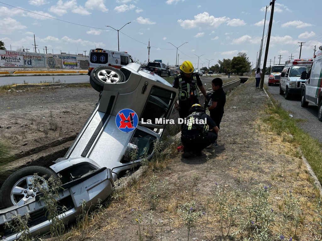 Según versiones la conductora identificada como Virginia perdió el control de su camioneta Liberty y volcó hasta caer en un canal ubicado frente a las oficinas de Ferromex.