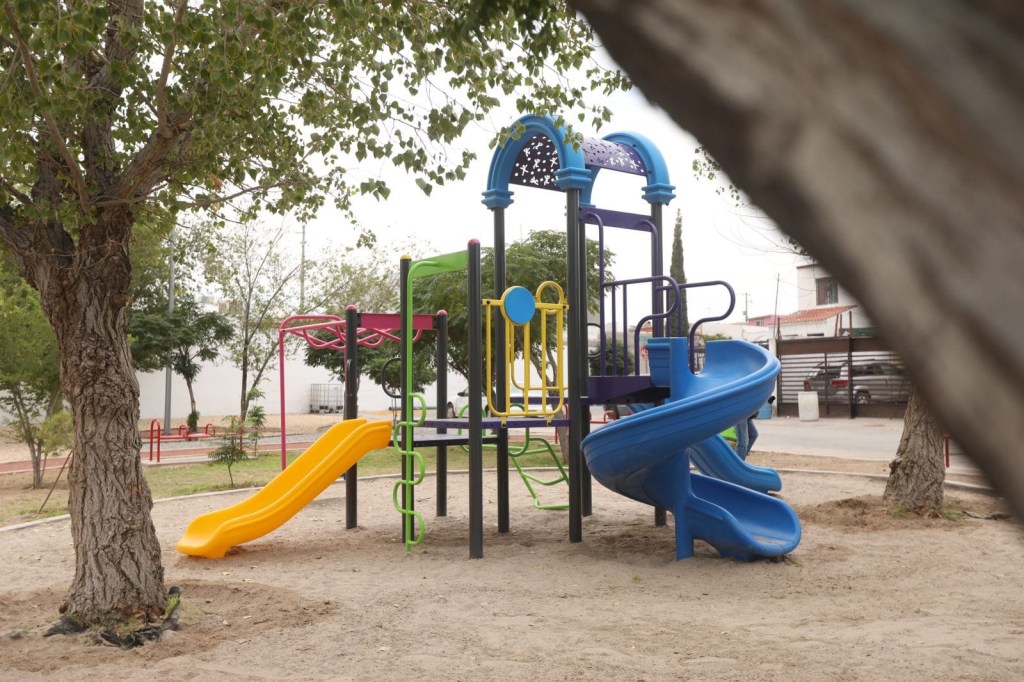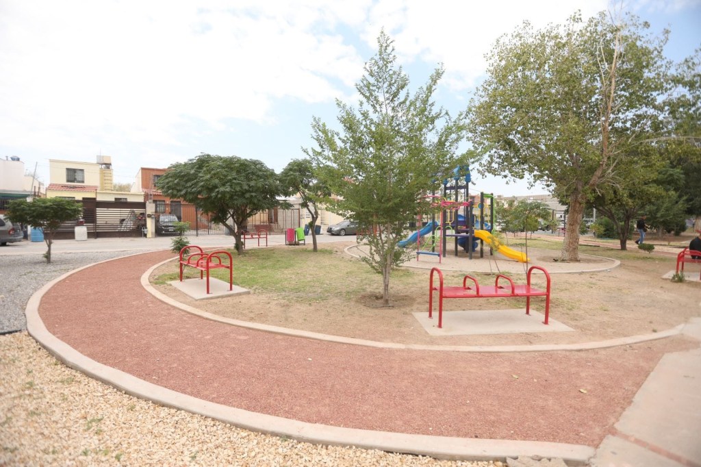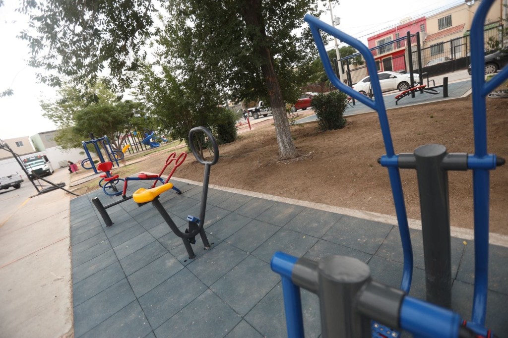 Ciudad Juárez.– El dia de ayer se entregaron las obras de restauración en dos diferentes parques a vecinos de la colonia Morelos II y en el Fraccionamiento Valle de Santiago.