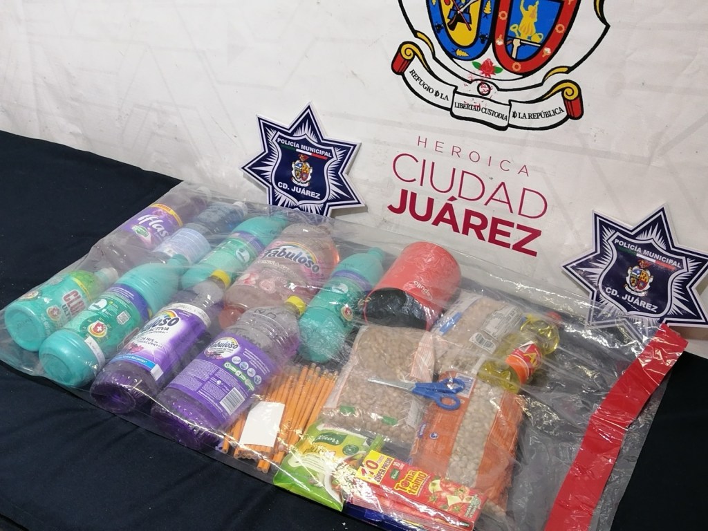 Los agentes preventivos le realizaron a la adolescente una revisión y llevaba en dos bolsas blancas: frijol, aceite, artículos de limpieza y algunos lápices.