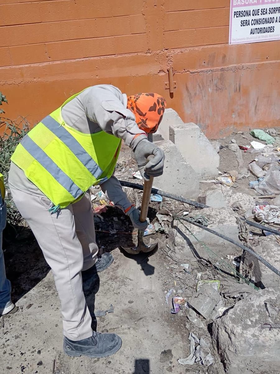 Ciudad Juárez.- Trabajadores de la Direccion De Limpia Ciudad Juárez, Chihuahua, realizaron tareas de limpieza y mantenimiento en la colonia Azteca, incluyendo la limpieza de acequias, arroyos y diques.
