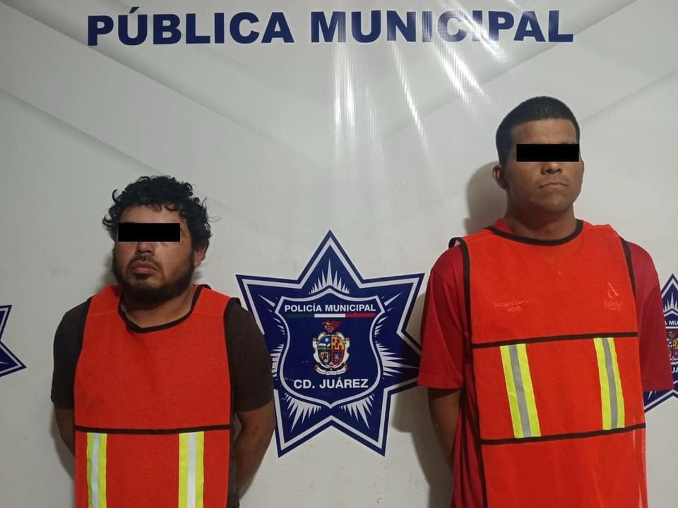 Ciudad Juárez.- Dos sujetos identificados como Alan Daniel M. M. de 26 años y Jorge D. C. de 30 años, fueron deten1d0s por la policía luego de que fueran sorprendidos vandalizando una cámara de vigilancia de la policía.