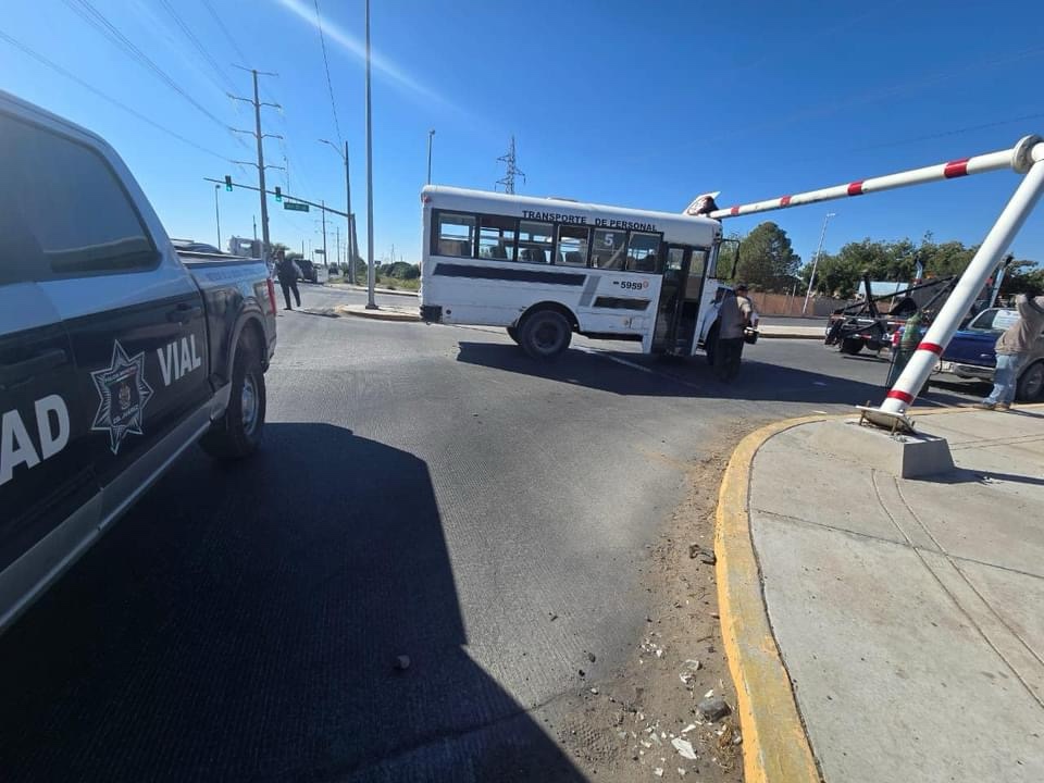 Ciudad Juárez.– Ayer, un mini camión de transporte de personal con el número 5959 ocasionó daños al chocar contra un medidor de altura en la intersección de las avenidas Juan Pablo y Valle del Sol.