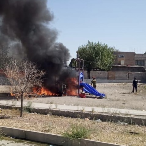 El incidente se reportó al número de emergencias 911, donde se alertó sobre un fuego en los juegos para niños, ubicados en el cruce de las calles Galenita y Coral.
