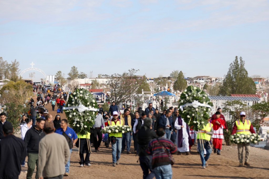 Ciudad Juárez.– Cómo parte de los festejos del Día de Muertos, se dejó una ofrenda floral y se realizó una misa en la Fosa Común, donde yacen los cuerpos de quienes no fueron reclamados por familiares.