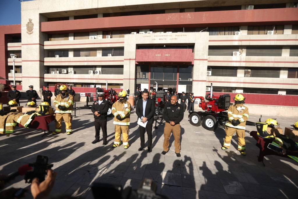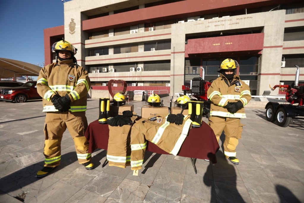 Ciudad Juárez.– Para fortalecer la capacidad de respuesta ante emergencias, esta mañana el Presidente Municipal, Cruz Pérez Cuéllar, entregó equipo especializado al Departamento de Bomberos.
