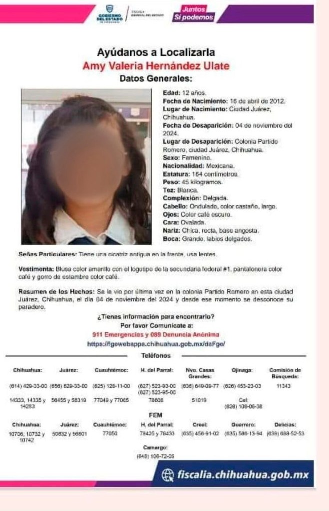 La jovencita de nombre Amy Valeria H.U. de 12 años fue llevada a Trabajo Social de estación Universidad y entregada a la Fiscalía General del Estado que se hará a cargo de las investigaciones que motivó la ausencia de la joven.
