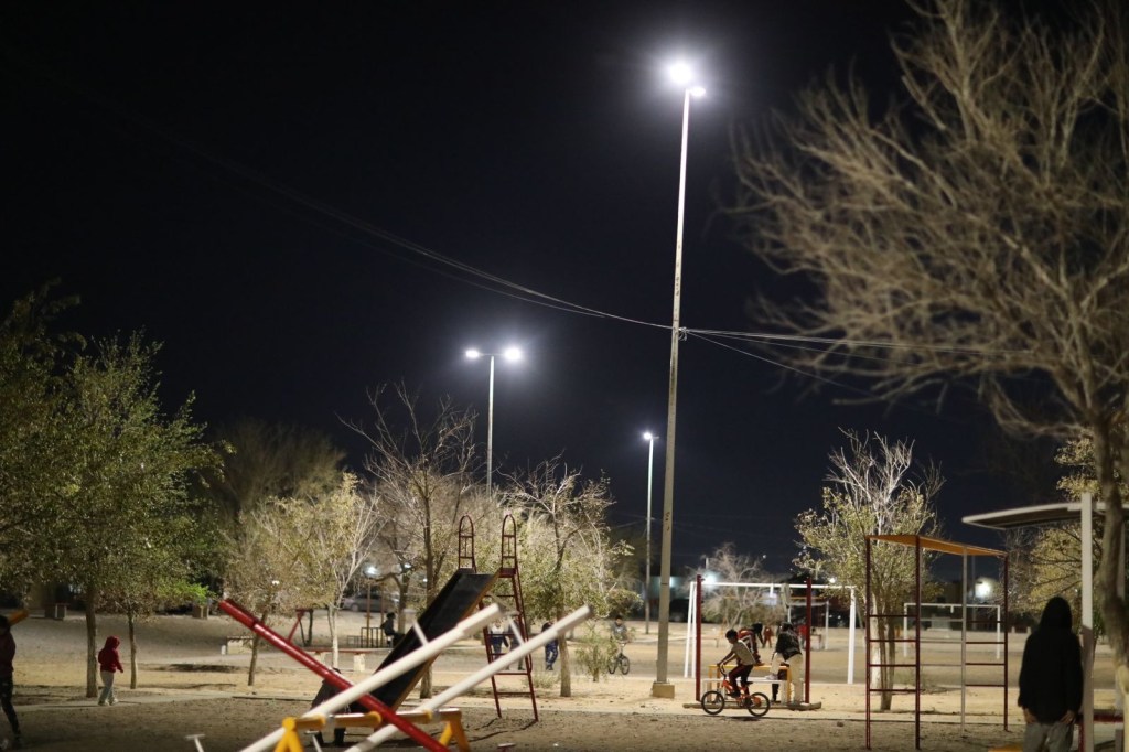 Las zonas favorecidas incluyen Sierra Vista, Sierra Vista Sur, Misiones de Creel, Senderos de Oriente, Jardines de Roma I y II, Parajes de San José, Valle de Fundadores, Senderos del Sol y Villas de Alcalá. Además, se iluminaron avenidas importantes como Prolongación Miguel De la Madrid, Del Desierto, San Isidro y Prolongación Independencia, cubriendo 23.5 kilómetros de vialidades.
