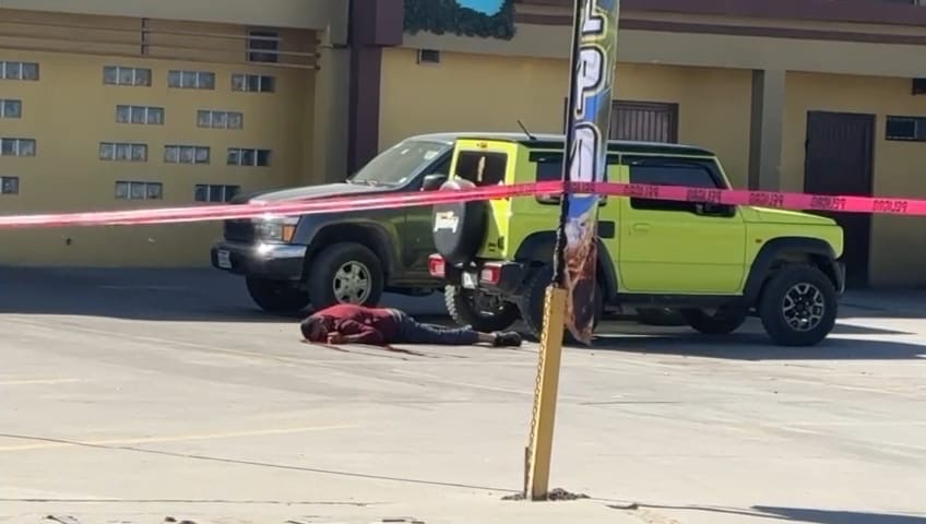 El hombre quedó tendido en el estacionamiento del negocio junto a un vehículo de color verde, llegando al lugar policías y militares para de nuevo hacerse bolas y resguardar la escena para elementos de la Fiscalía.