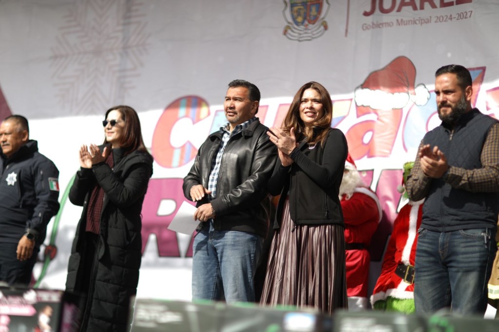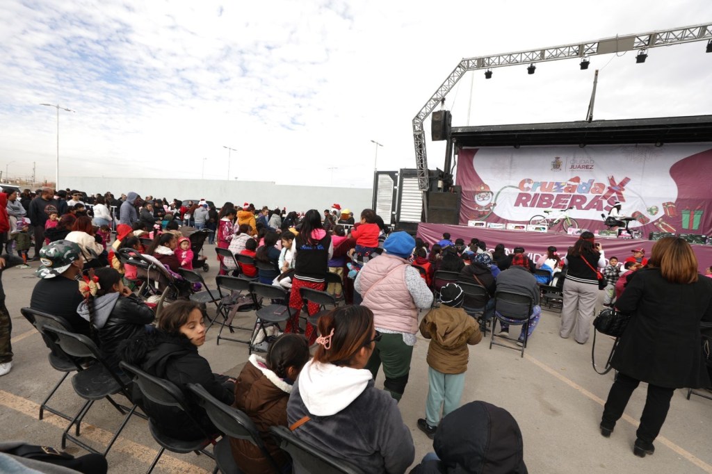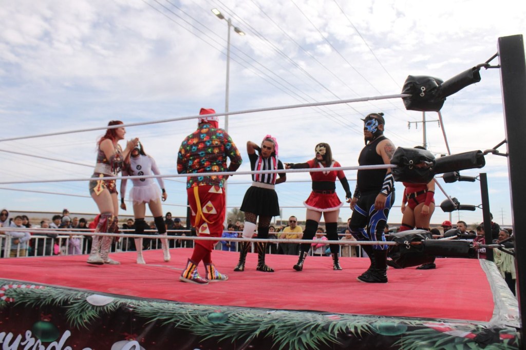 Ciudad Juárez.– Este día habitantes de la colonia Riveras del Bravo disfrutaron de una posada, en la cual recibieron comida y regalos para los niños, así como un espectáculo de lucha libre.