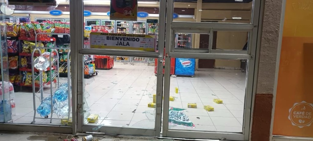 La tienda ubicada en las calles Mar Azul y Tierra de Fuego, se activó la alarma cuando los mugrosotes quebraron las ventanas de las puertas de la tienda e ingresaron en ella para piojamente robarse cerveza y un microondas.