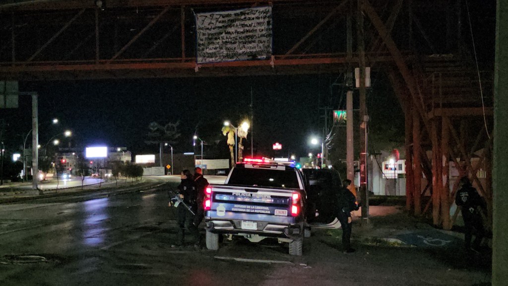 Ciudad Juárez.– Una manta firmada por un grupo criminal fue colocada en el puente peatonal de la avenida Paseo Triunfo de la República y casi cruce con Vicente Guerrero.
