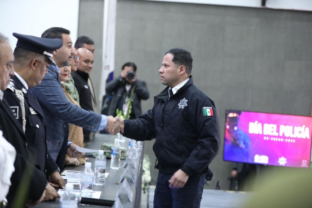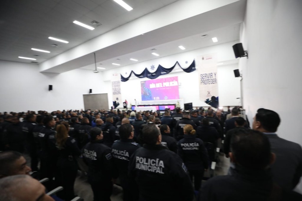 Ciudad Juárez.– Esta mañana se llevó a cabo una ceremonia se reconoció a los elementos de la Secretaría de Seguridad Pública (SSPM) y Seguridad Vial. Encabezada por el Presidente Municipal, Cruz Pérez Cuéllar, el evento destacó la labor y sacrificio de los policías. Además, recibieron un bono de 10 mil pesos otorgado por cuarto año consecutivo.