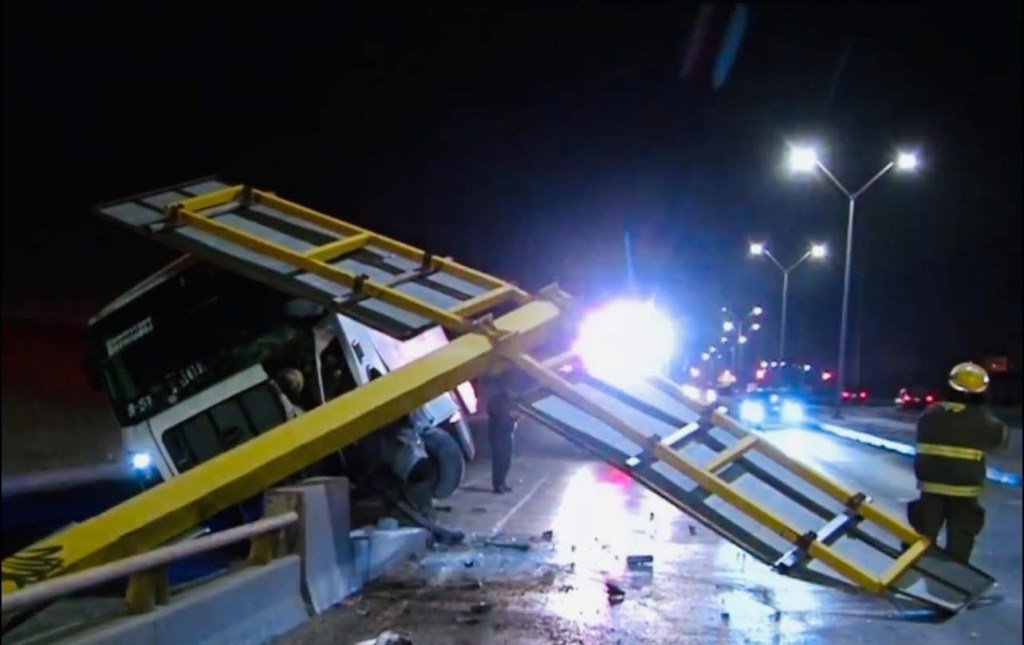 El camión era conducido a exceso de velocidad como de costumbre, el cual es de la marca Dina Runner 10, modelo 2020, con placas 756964B, dando el servicio a la maquiladora Commscope.