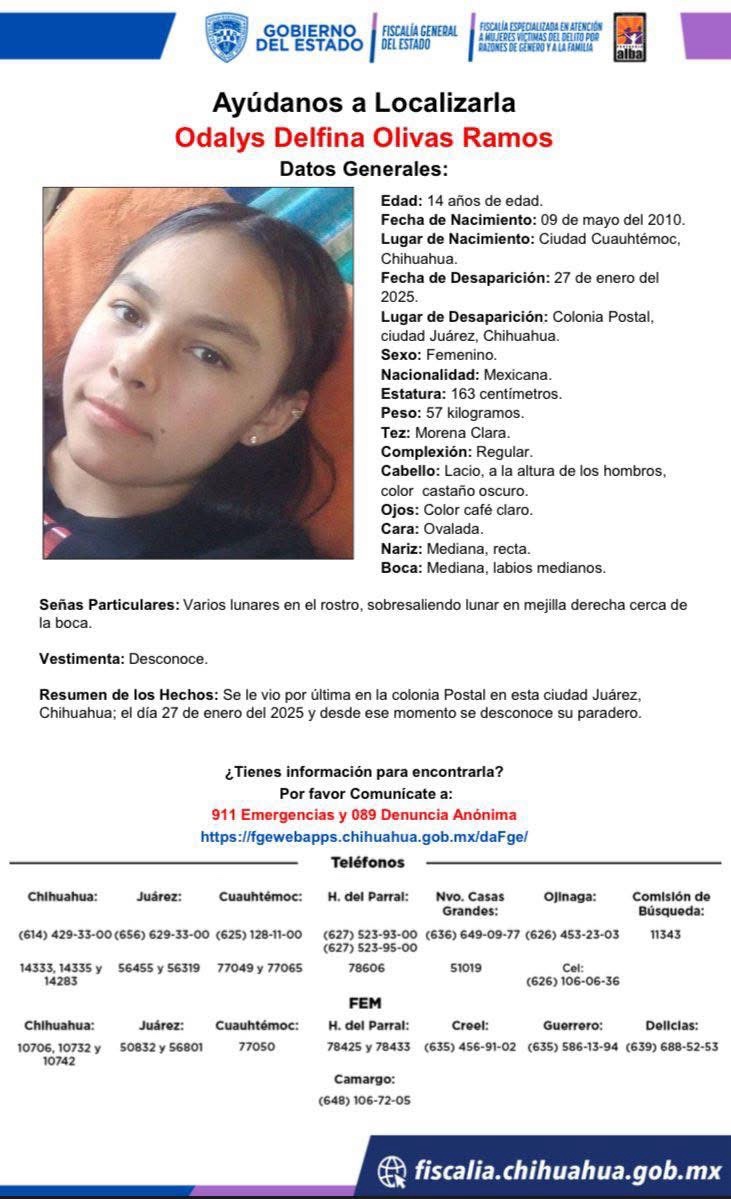 La Fiscalía General del Estado solicita ayuda para localizar a Odalys Delfina, Adamaris Michell y Cristen Joanna de apellidos Olivas Ramos.