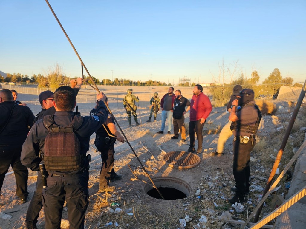 Diversas autoridades policiacas se encuentran en los hoyos de El Chamizal, por el área del Biblioavión, en busca de otro túnel que aparentemente es utilizado como cruce ilegal para migrantes.