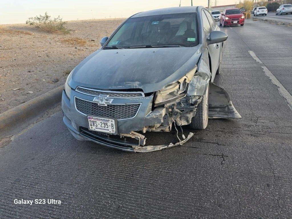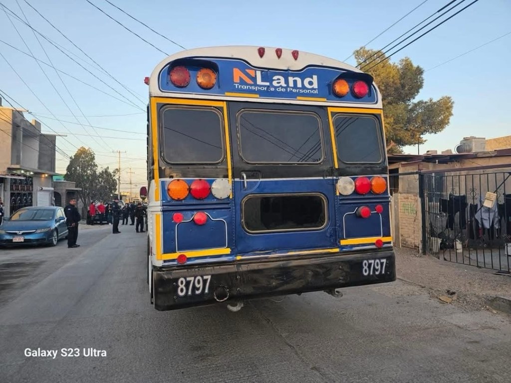 El yonkesote identificado con el número económico 8797 y perteneciente a la empresa maquiladora NLand, impactó contra un automóvil Chevrolet Cruze en el bulevar Juan Pablo II, cerca del puente Zaragoza.