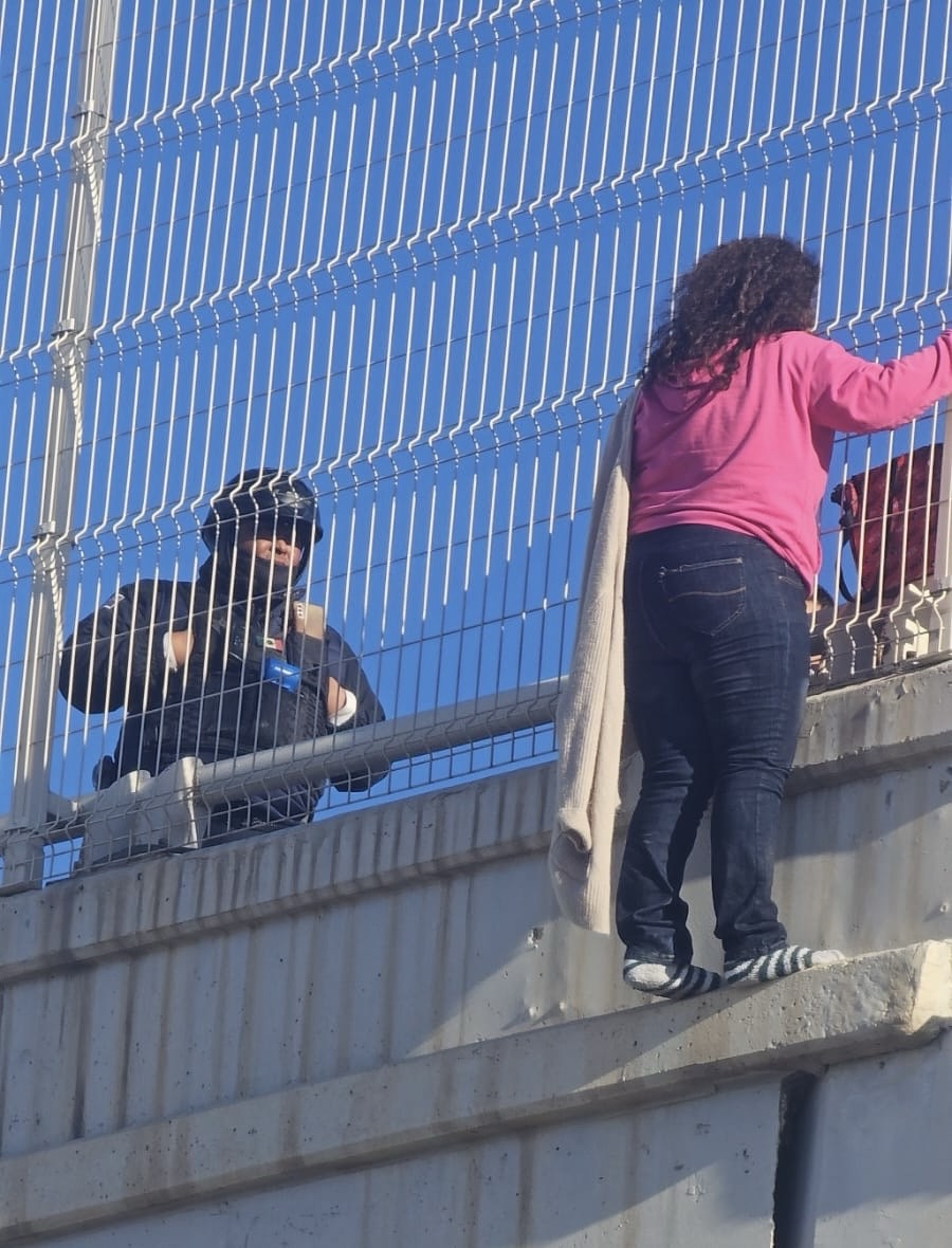 La mujer en crisis fue ayudada por un agente de Seguridad Vial de apellido Venzor a bordo de la motocicleta 755, buscó la manera de evitar que la mujer tomará una mala decisión.