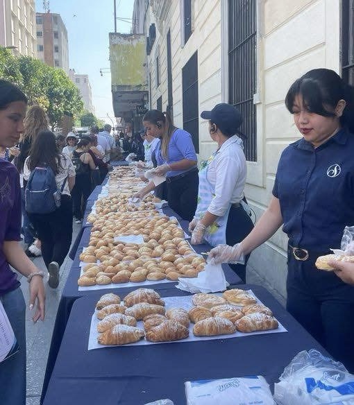 Una panadería de nombre San Martin, ubicada en la Ciudad de México, colocó mesas con pan para las mujeres que marcharon por el día internacional de la mujer.