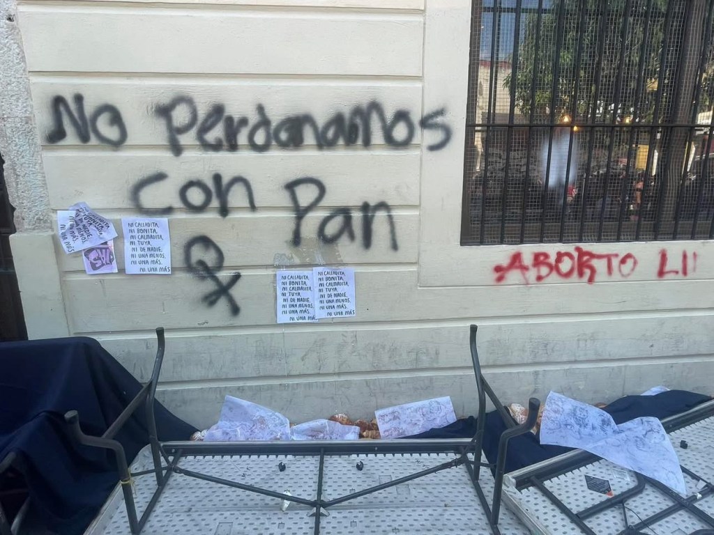 Varias mujeres comenzaron a tirar las mesas y con ello el pan, rayando la fachada de la panadería que solo quería solidarizarse poniendo su granito de arena.