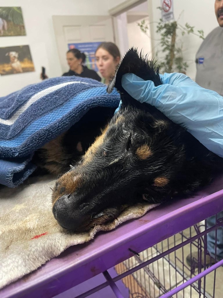 La perrita que fue bautizada como Violeta, se encuentra en buen estado de salud gracias al veterinario José Manuel Arias Wilches que le dio atención médica quítandole el 95% de ml chapopote del cuerpo.