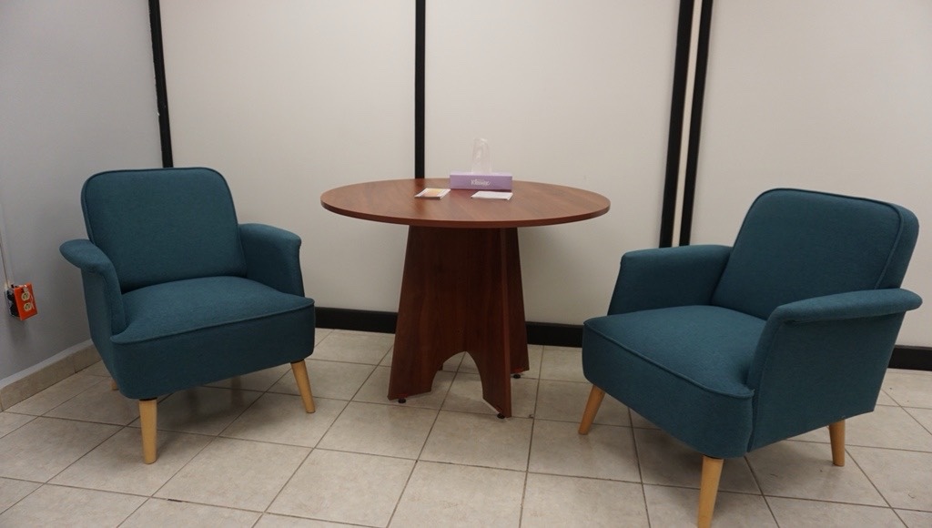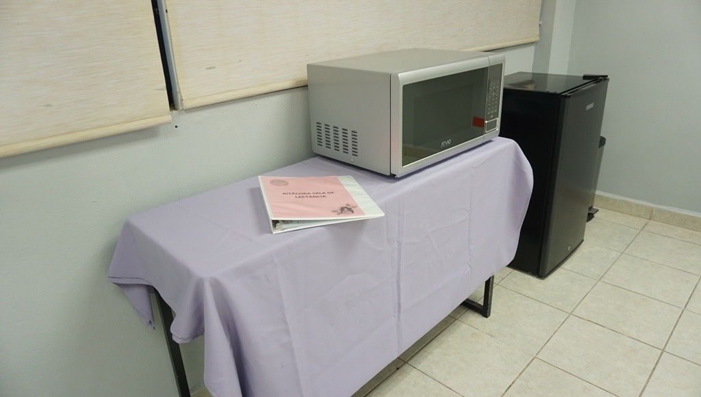 Ubicada en el Edificio A, la sala cuenta con frigobar, microondas, dispensadores de agua, cambiador de bebés, mesa y sillas acojinadas. Su equipamiento tuvo una inversión de 30 mil pesos.