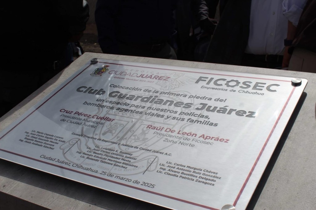 El Presidente Municipal Cruz Pérez Cuéllar colocó la primera piedra del Parque Club Guardianes Juárez, beneficiando a más de 3 mil elementos de seguridad pública municipal y de protección civil.