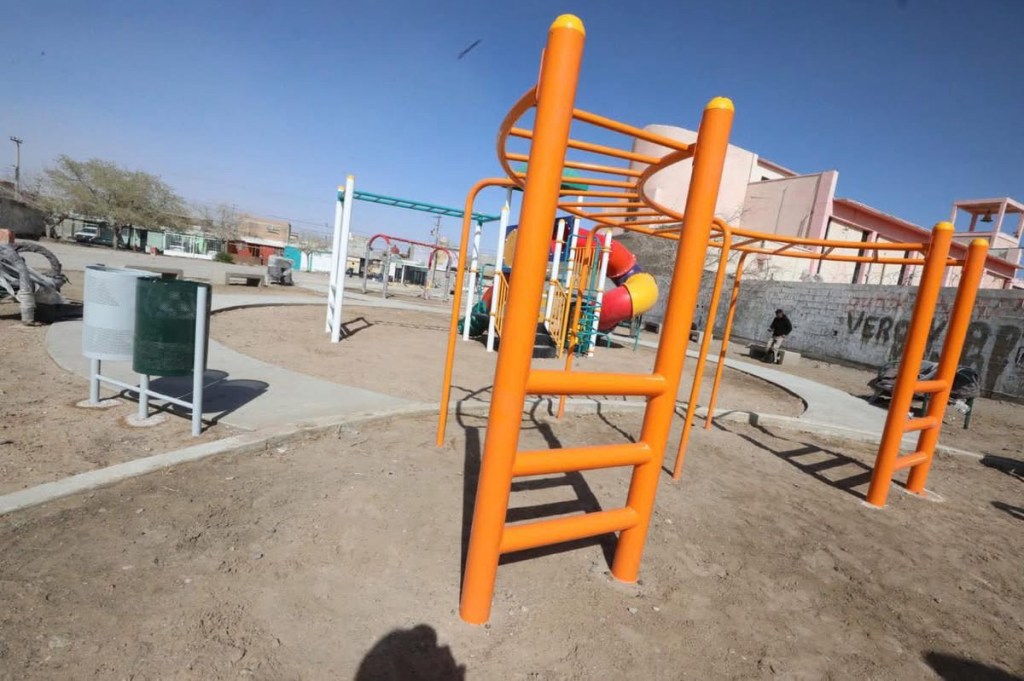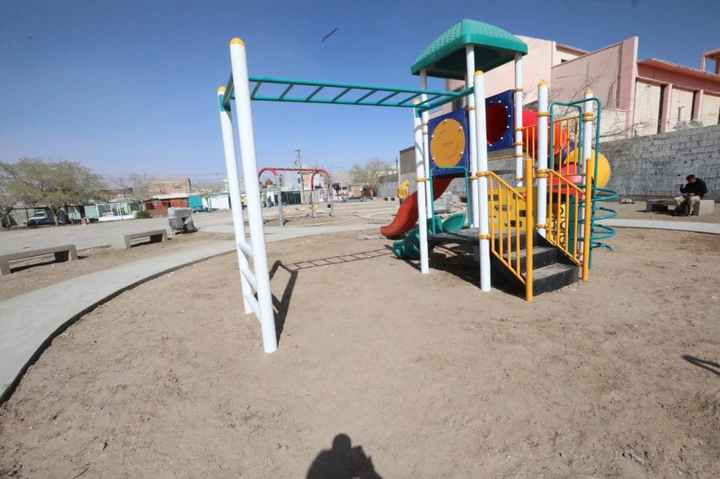 Las mejoras incluyen un andador, cancha, rampas, mobiliario urbano, ejercitadores y juegos infantiles, además de alumbrado público, beneficiando a la colonia Ampliación Aeropuerto.