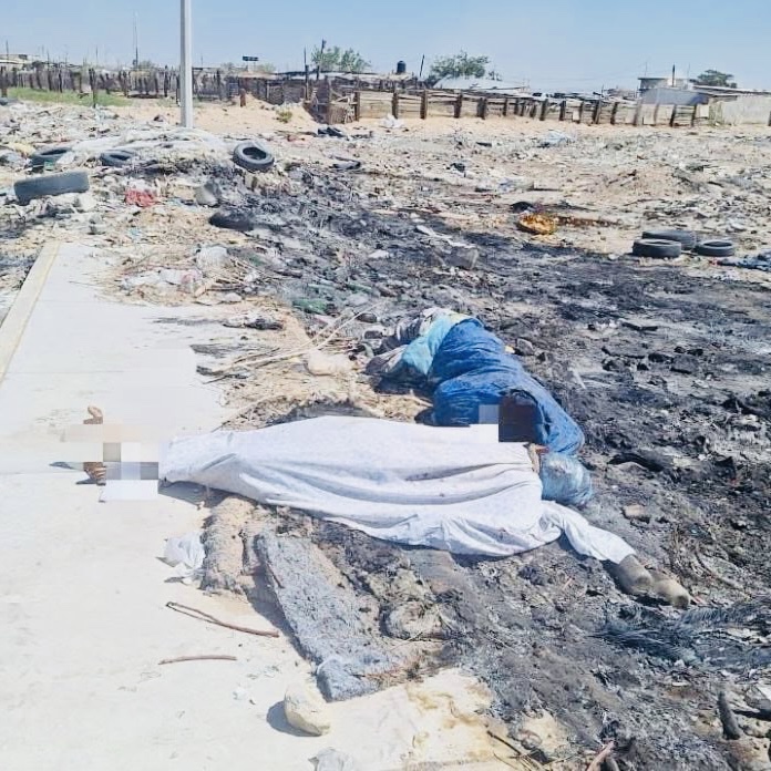 Dos personas fueron localizadas sin vida en un baldío, fuera de la barda perimetral de Cerrada del Álamo II, envueltas en sábanas y cobijas.