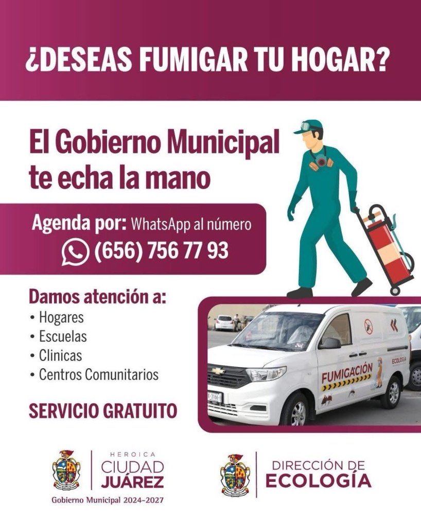 El servicio es realizado por personal certificado ha sido solicitado por varios sectores para controlar garrapatas y otros insectos. Para recibir fumigación gratuita, se puede agendar una visita mediante mensaje al número 656 756 7793.